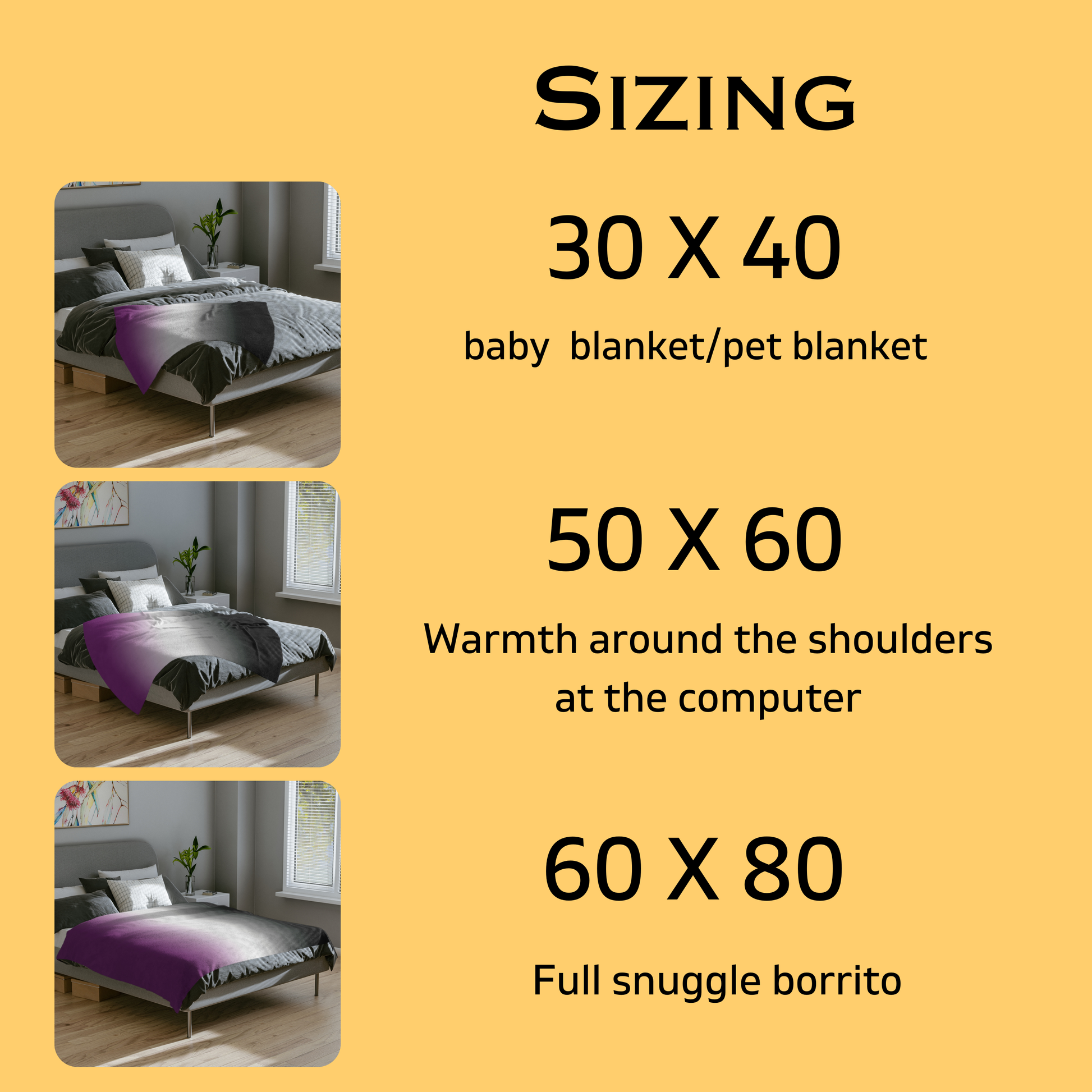 Everyone has their favorite blankie, if not—this will be it. This Asexual Pride flag blanket comes in multiple sizes so anyone can enjoy it--even your four-legged friends. The 2" stitch makes sure the blanket's borders stay intact. It's made from a super-soft fleece that'll be decorated with your eye-catching designs in picture-perfect quality.